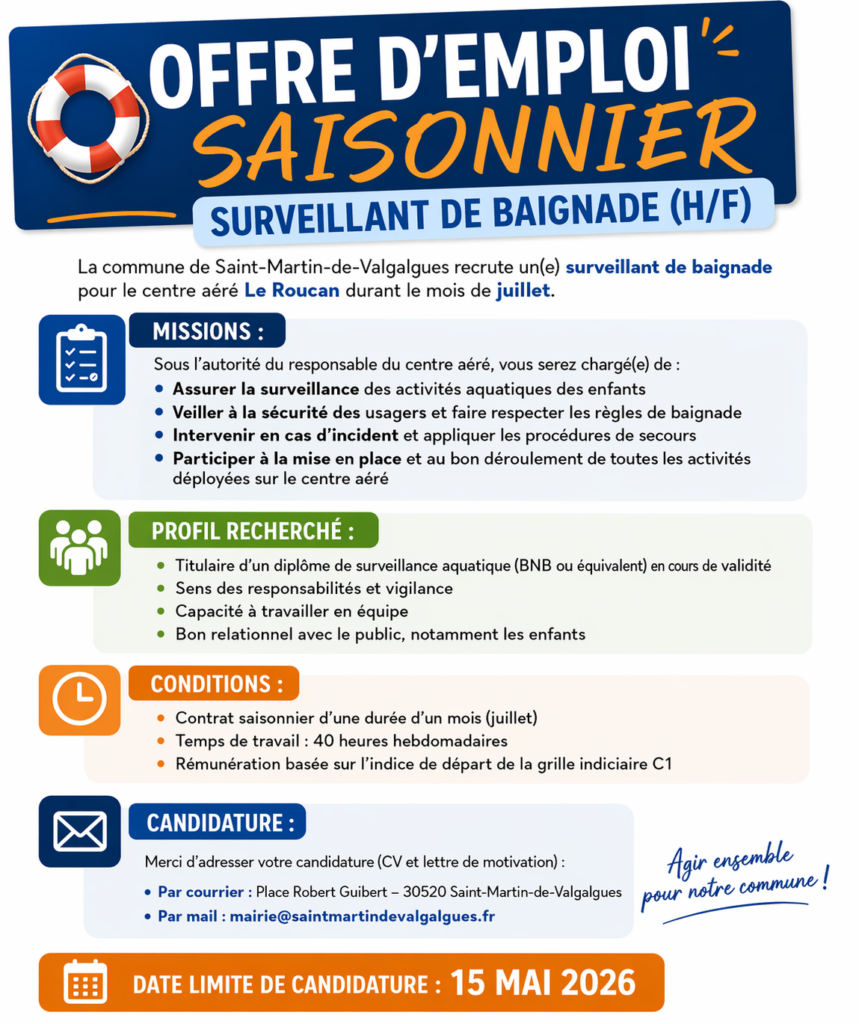Offre Emploi Saisonnier – Surveillant de Baignade